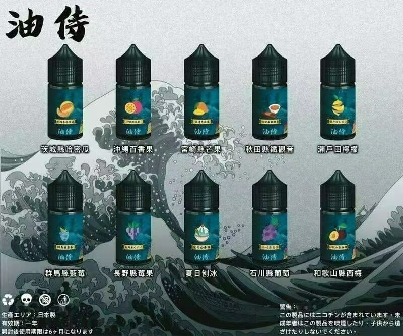 原裝進口 【日本油侍煙油】30ML系列 小煙油日本正純口味 高端商品注油式都能使用,不分主機種類日本油侍煙油以其獨特的口感和高品質而聞名